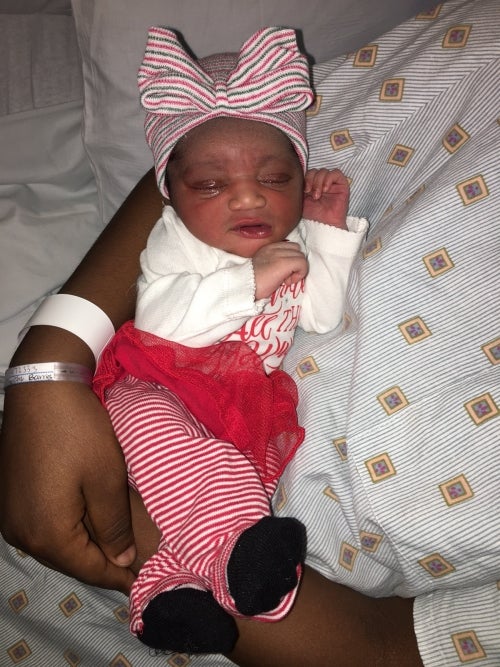 Born at 7:42 a.m., 18.5-inch long Aariah Kendreia Williams was the first Christmas baby delivered at the hospital. Mother and baby are both doing well.