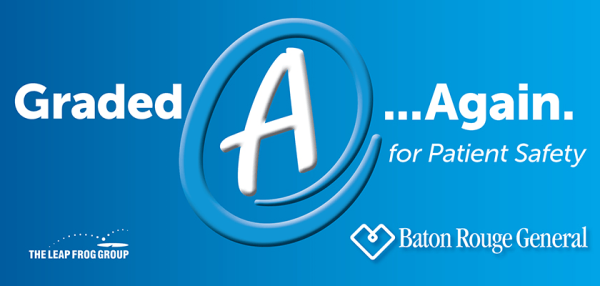 Baton Rouge, La. – Today, Baton Rouge General again received an ‘A’ for patient Safety from the Leapfrog Group. Only 15 hospitals in Louisiana and two in East Baton Rouge Parish received an ‘A’ rating in the fall report. This is the sixth year in a row for Baton Rouge General to receive an ‘A’ from the Leapfrog Group, more than any other local hospital.