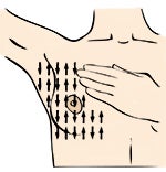 You should also examine each underarm with your arm only slightly raised so you can easily feel in this area. Raising your arm straight up tightens the tissue in this area and makes it harder to examine.