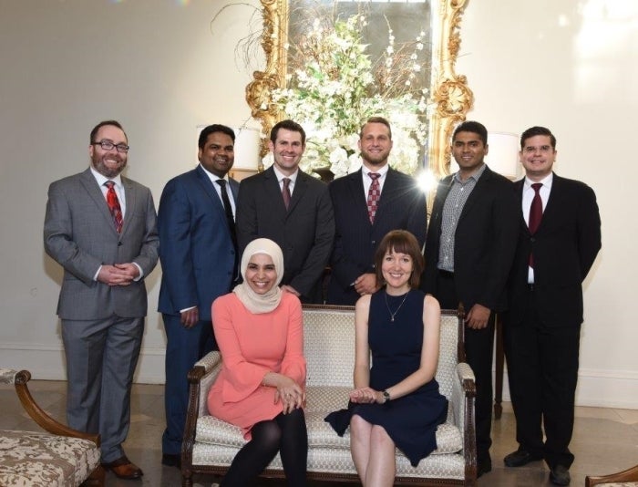 BRG Internal Medicine Residency Program graduate are (front row, left to right) Yasmin Hajja, MD, and Galina Clous, MD; (back row left to right) Gabriel Randall, DO; Chenna Nalabolu, MD; Eric Frusha, MD; Gaetano Ruggiero, MD; Abhishek Alluri, MD; and Victor Gasia, MD.