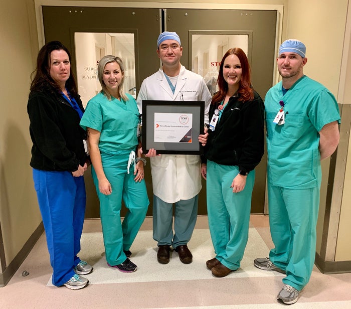 From left, Director of Perioperative Services Jennifer Manale, Kayley Naquin, Dr. Vince Weaver, Claire Smith, and Brandt Corban