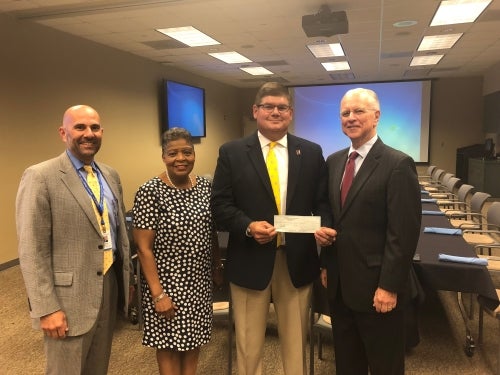 Pictured left to right are: Edgardo Tenreiro, BRG President and CEO; Gwen Hamilton, BRG Foundation Board Chair; Chad Major, President of the Professional Fire Fighters Association of Louisiana; and Joseph Juban, GHS/BRG Board Chair.