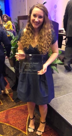Baton Rouge, La. – Her reputation for compassion, dedication and leadership earned Meredith Cooper, BSN, RN, CCRN, the title of Clinical Practice Nurse of the Year at Saturday’s Louisiana State Nurses Association (LSNA) awards ceremony. Cooper, who works in the Intensive Care Unit at Baton Rouge General’s Bluebonnet campus, received the award at the LSNA’s annual Nightingale Awards banquet.