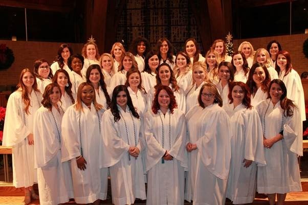 First Row: Jennifer Masanz, Desh Maurice, Brittny Averette, Jean Marie Hill, Heidi Broussard, Callie Mizell, and Jenny Ashley. Second Row: Sydney Mitchell, Hanna Simpson, Demi Henderson, Sydney Jo O’Banion, Becky Walker, Mackenzie Mitchell, Kristen Ashford, and Yuna Choi. Third Row: Shana Hamilton, Brittany Kensey, Chelsey Deweese, Jamie Odum, Holli Delapasse, Madison Gullatt, Ashley Gautreau, Mary Kate McGrew, Lacey Jones, and Kristen Thornhill. Fourth Row: Jenna Ard, Rebecca McCoy, Madison Free, Aida Toure, Cora Duehring, Stephanie Garcia, Erin Whitstine, Katy Griffin, Lauren Hotstream, and Penny Van Pelt, nursing program coordinator.